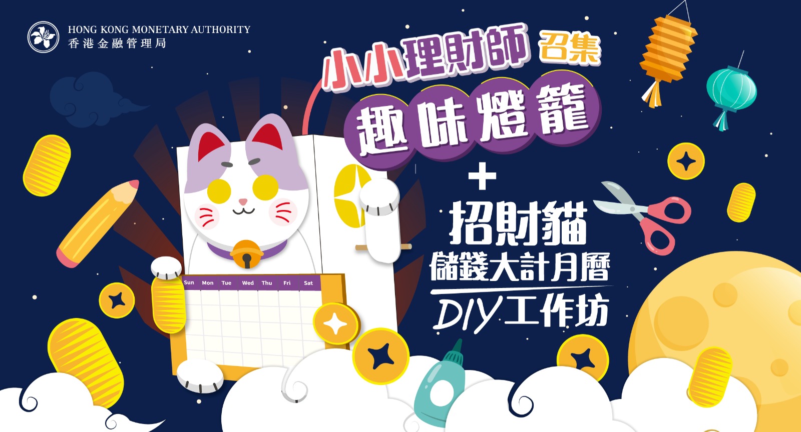 快來用文字分享一個具創意的親子理財活動,以及告訴我們你最喜愛哪一集《小小理財師》理財教育短片及原因,就有機會參與【趣味燈籠+招財貓儲錢大計月曆 DIY工作坊】!